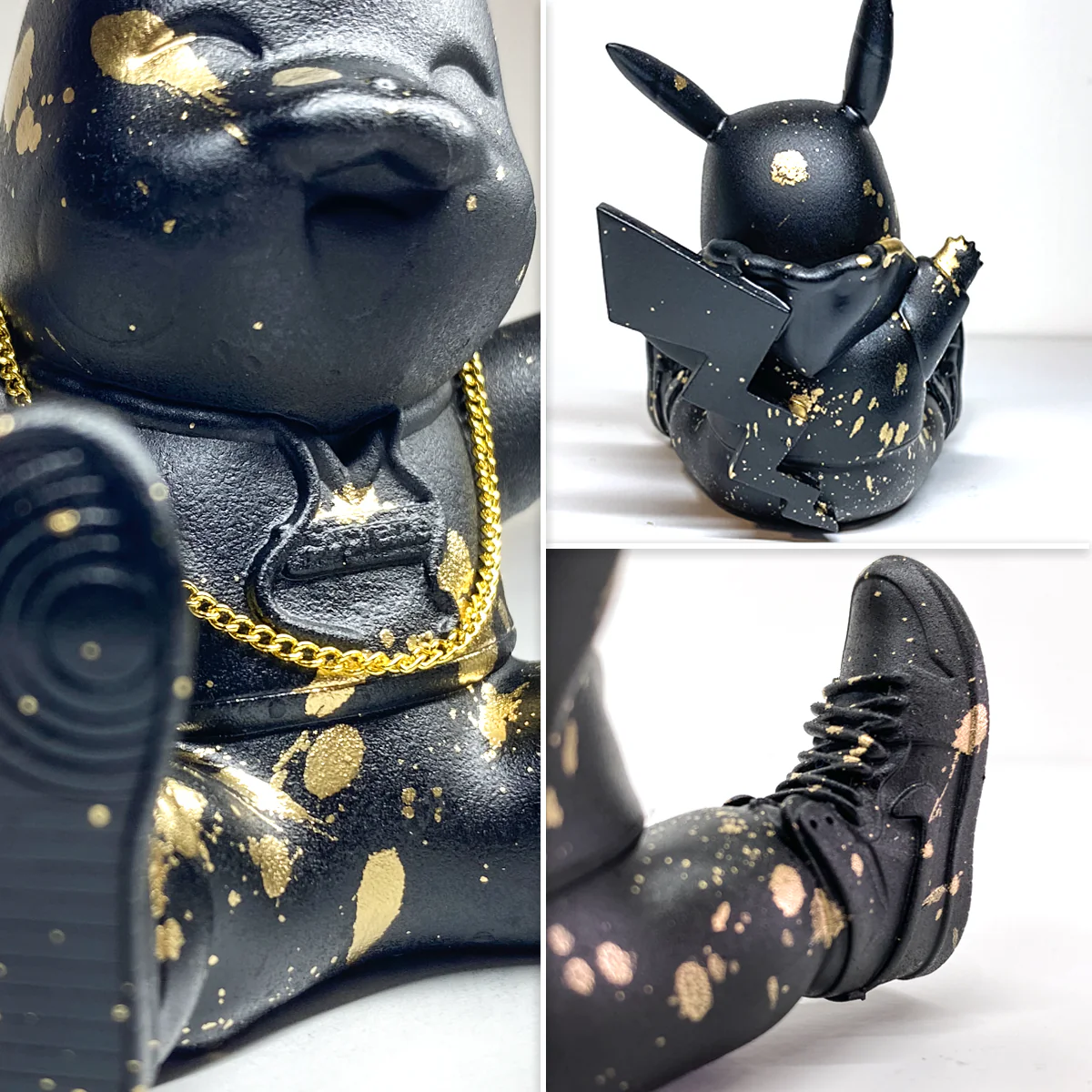 This Limited Series Graffiti Sculpture is the perfect way to add some style to your space. Standing tall at 4-Inches, "Hypebeast Pikachu" is wearing a Supreme hoodie and Air Jordan 1's, giving a unique and vibrant look to any room. Each piece is individually handcrafted using a variety of non-traditional 3D and traditional hand painted mediums, includes a removable gold plated chain and only 10 will be available.